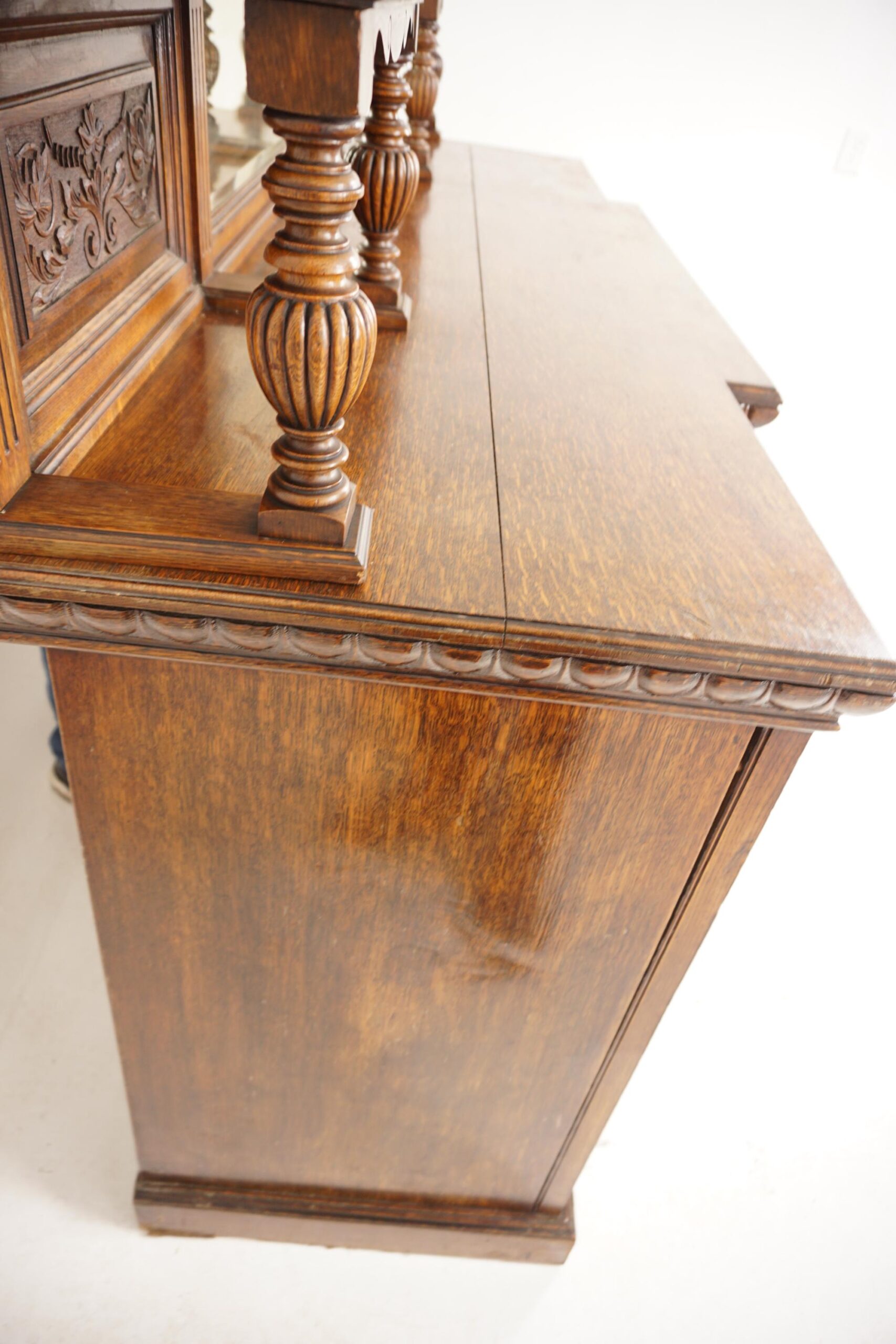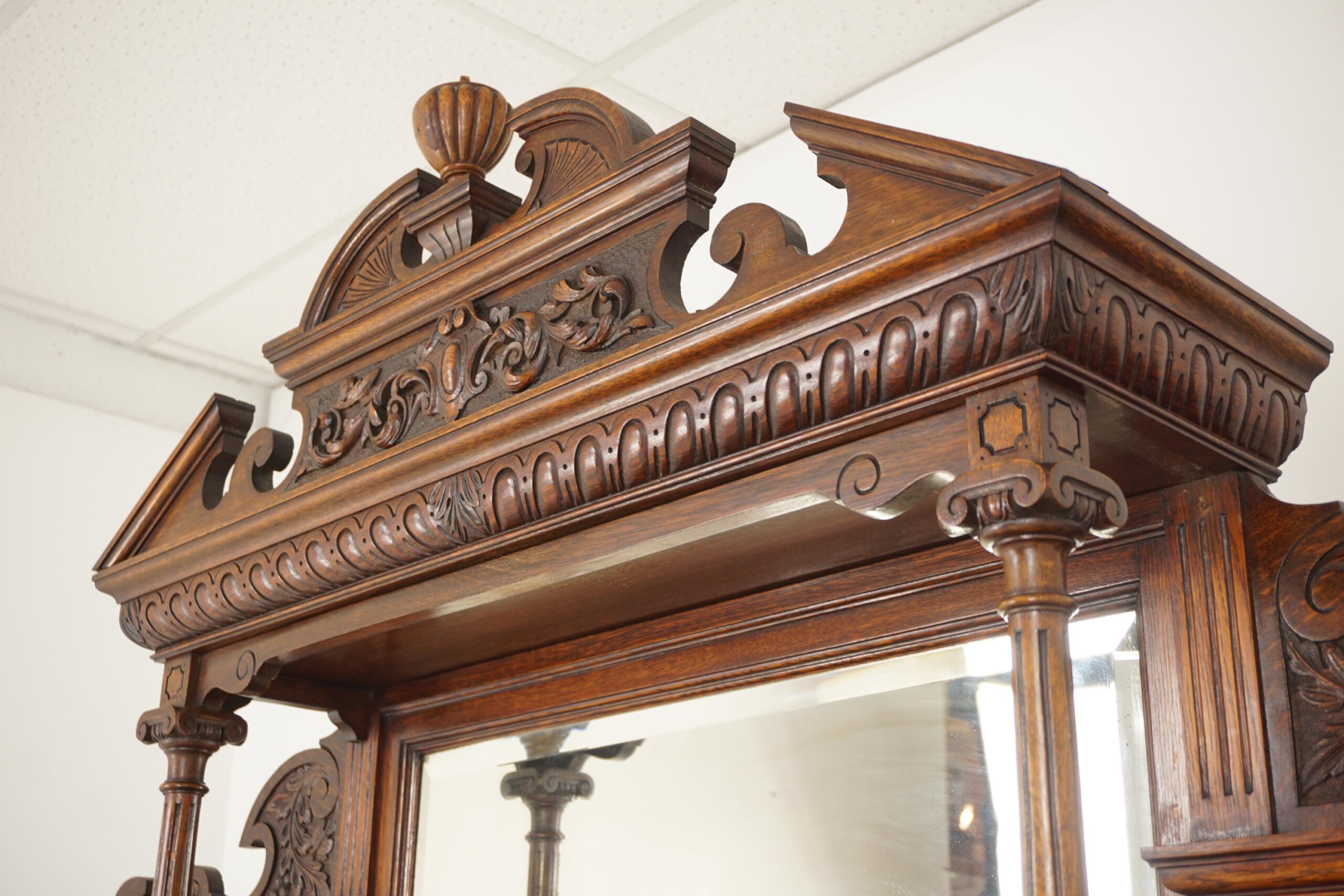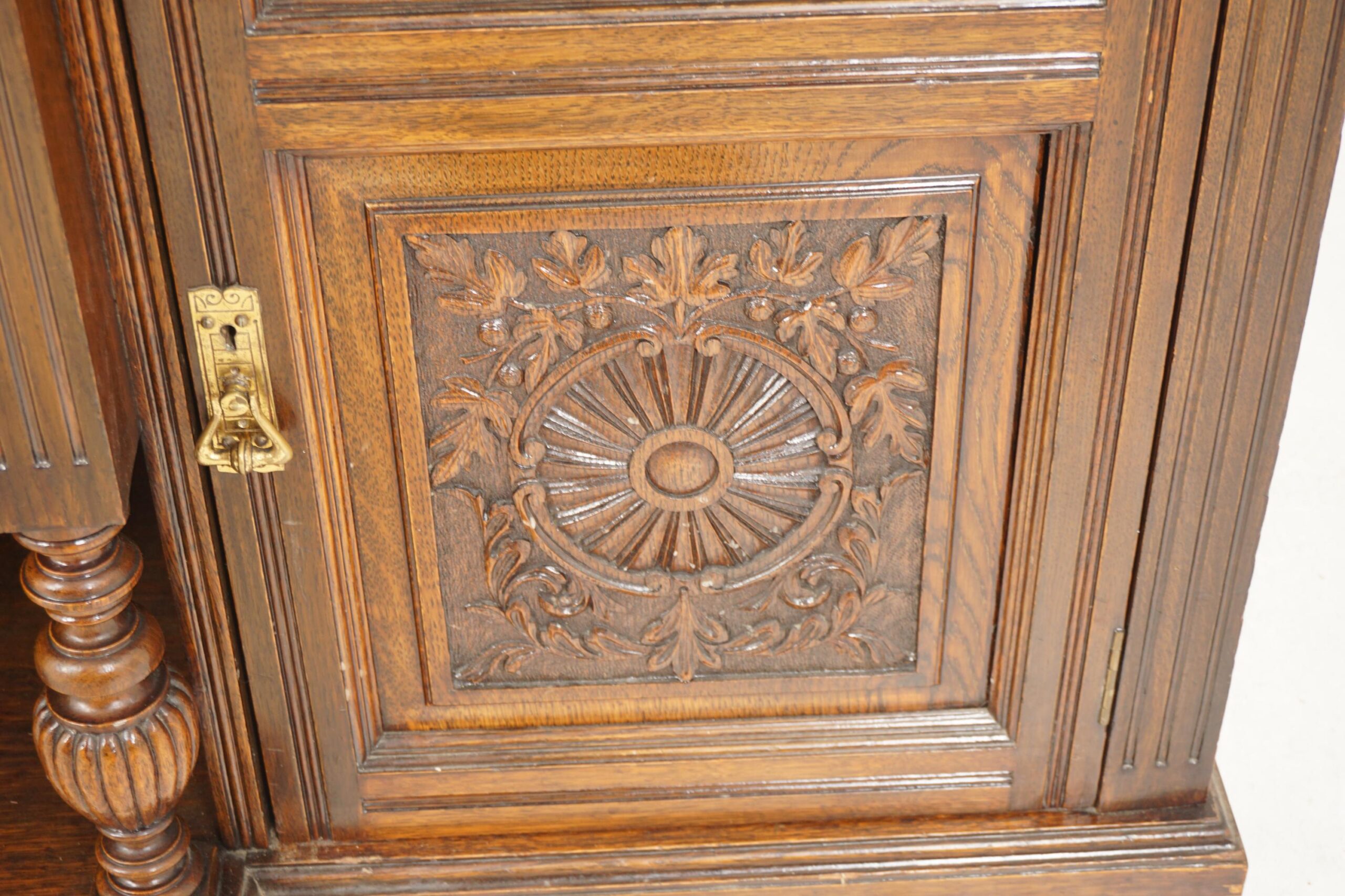 Victorian Large Carved Oak Mirror Back Sideboard Buffet, Scotland 1890, H189