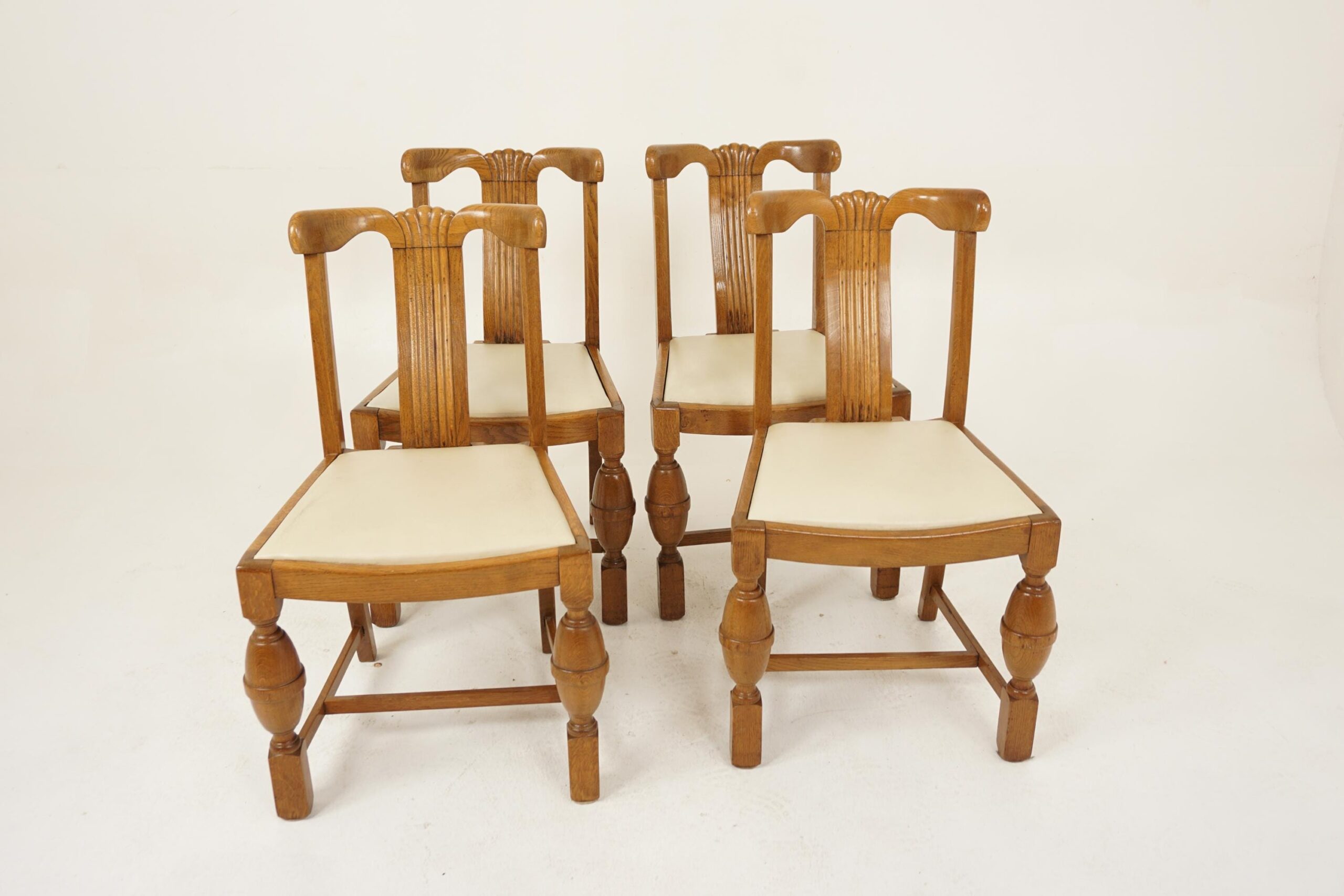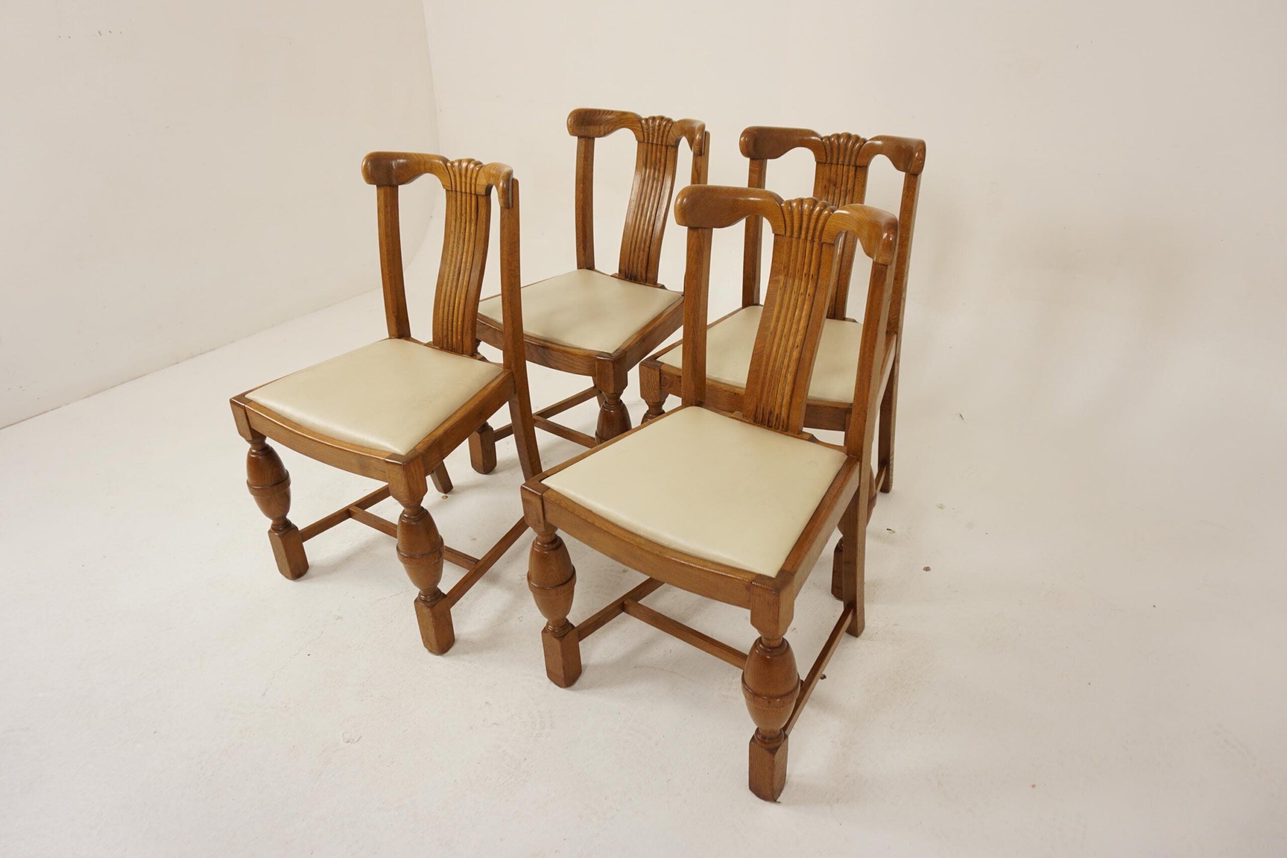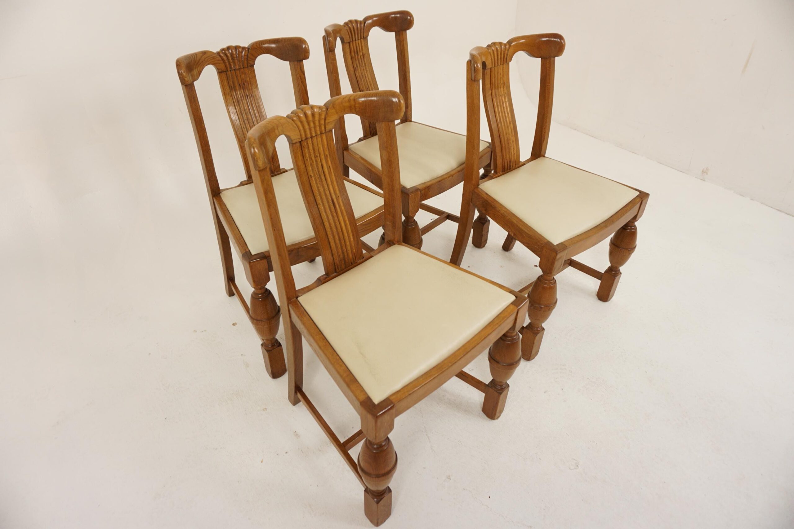Vintage Art Deco Carved Oak Dining Kitchen Chairs (4 ) Scotland 1930 F-1255