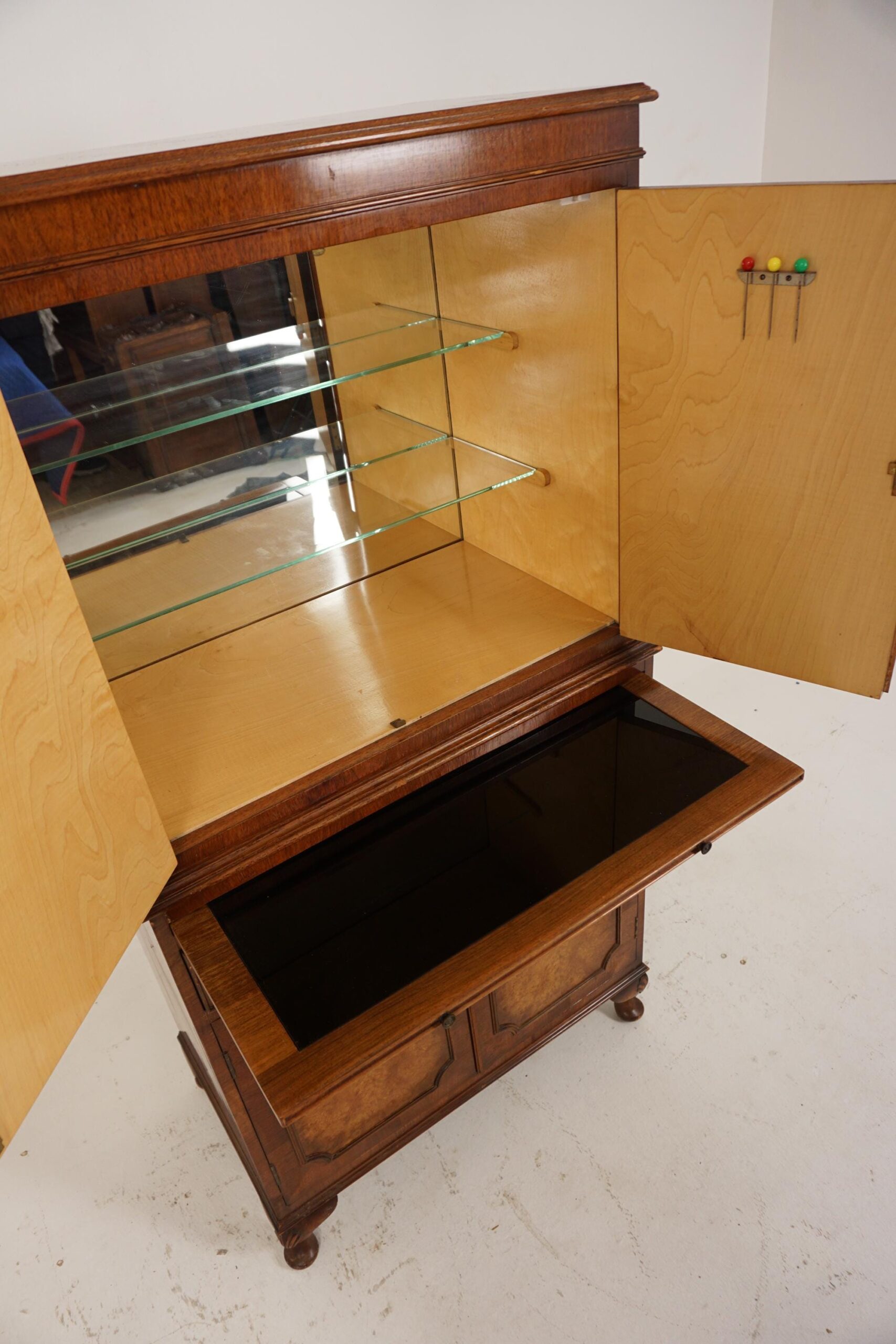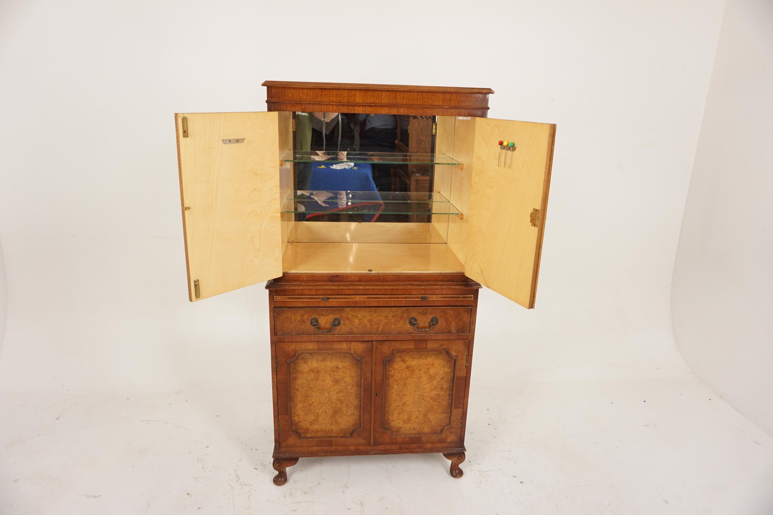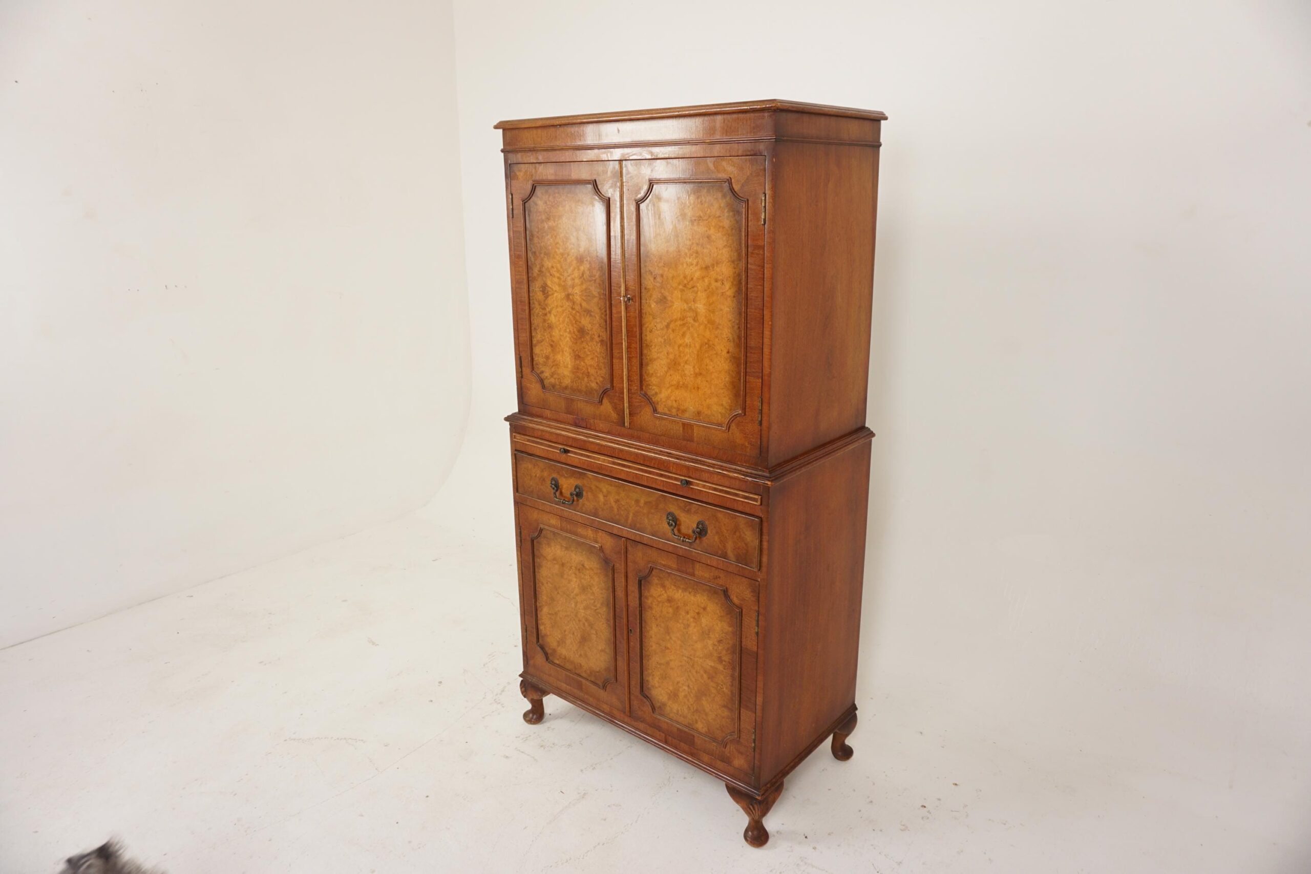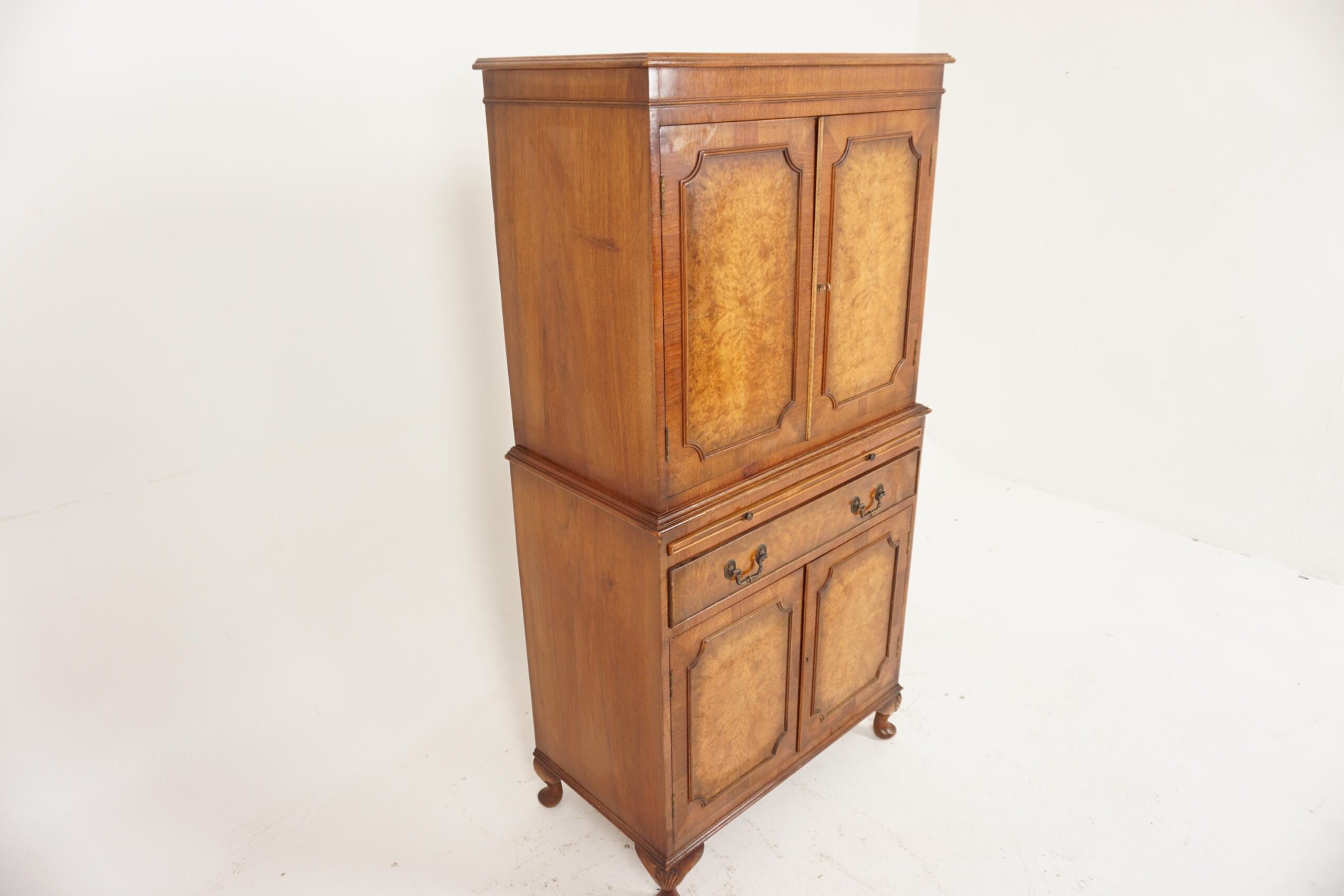 Vintage Burr Walnut Cocktail Drinks Cabinet, Scotland 1930, H396