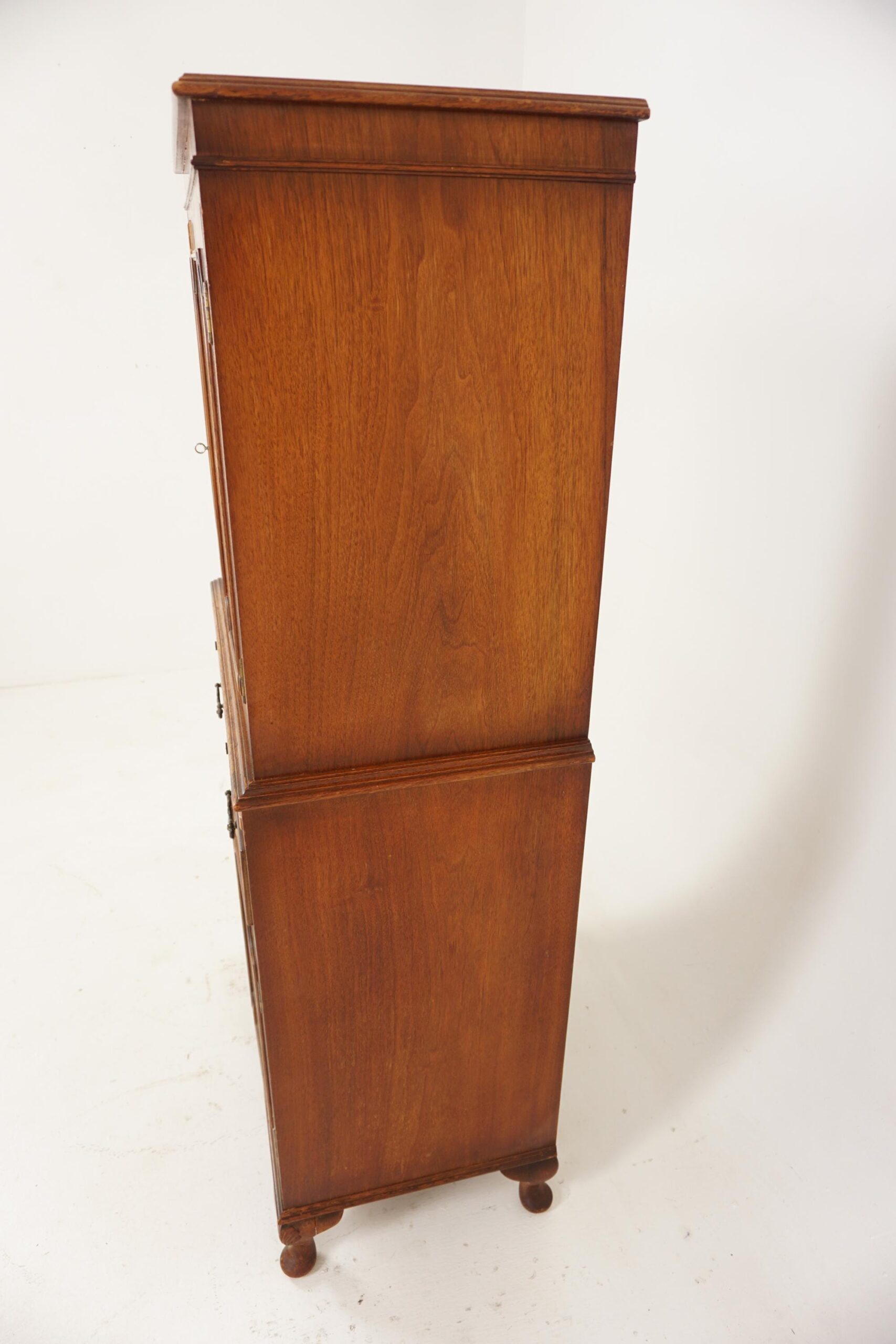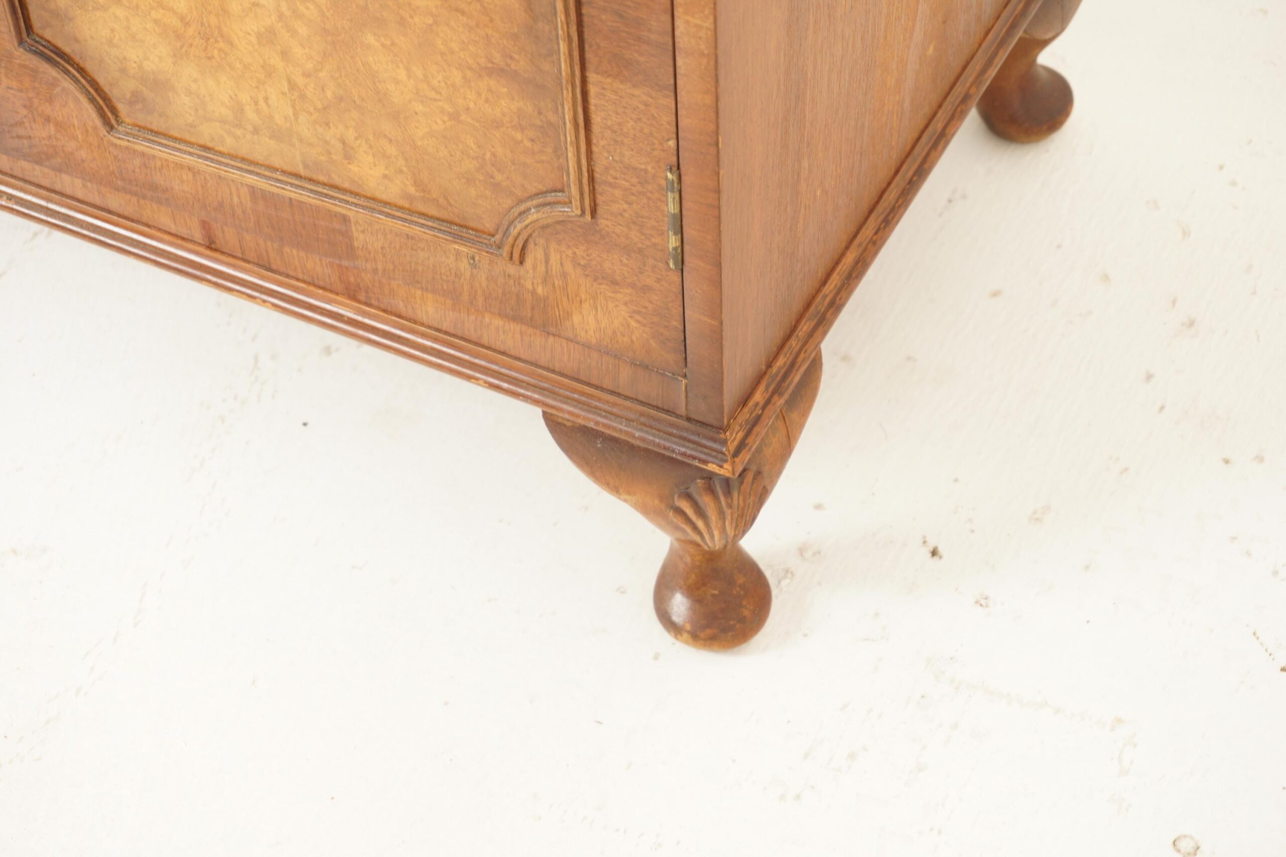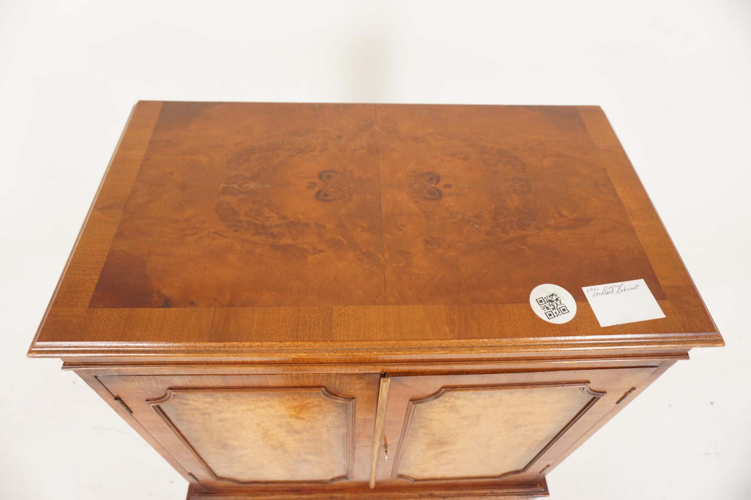 Below having two doors with burr walnut panels and applied molding