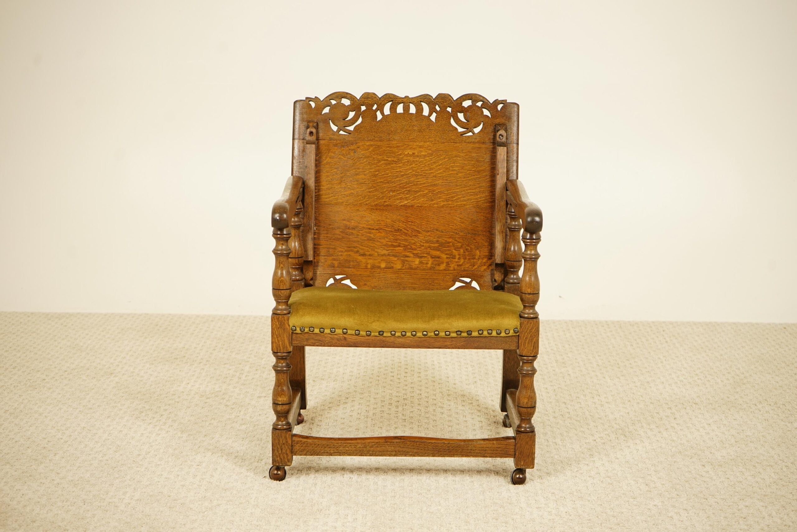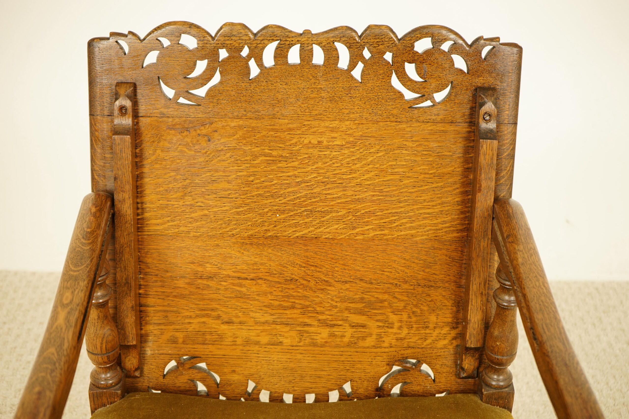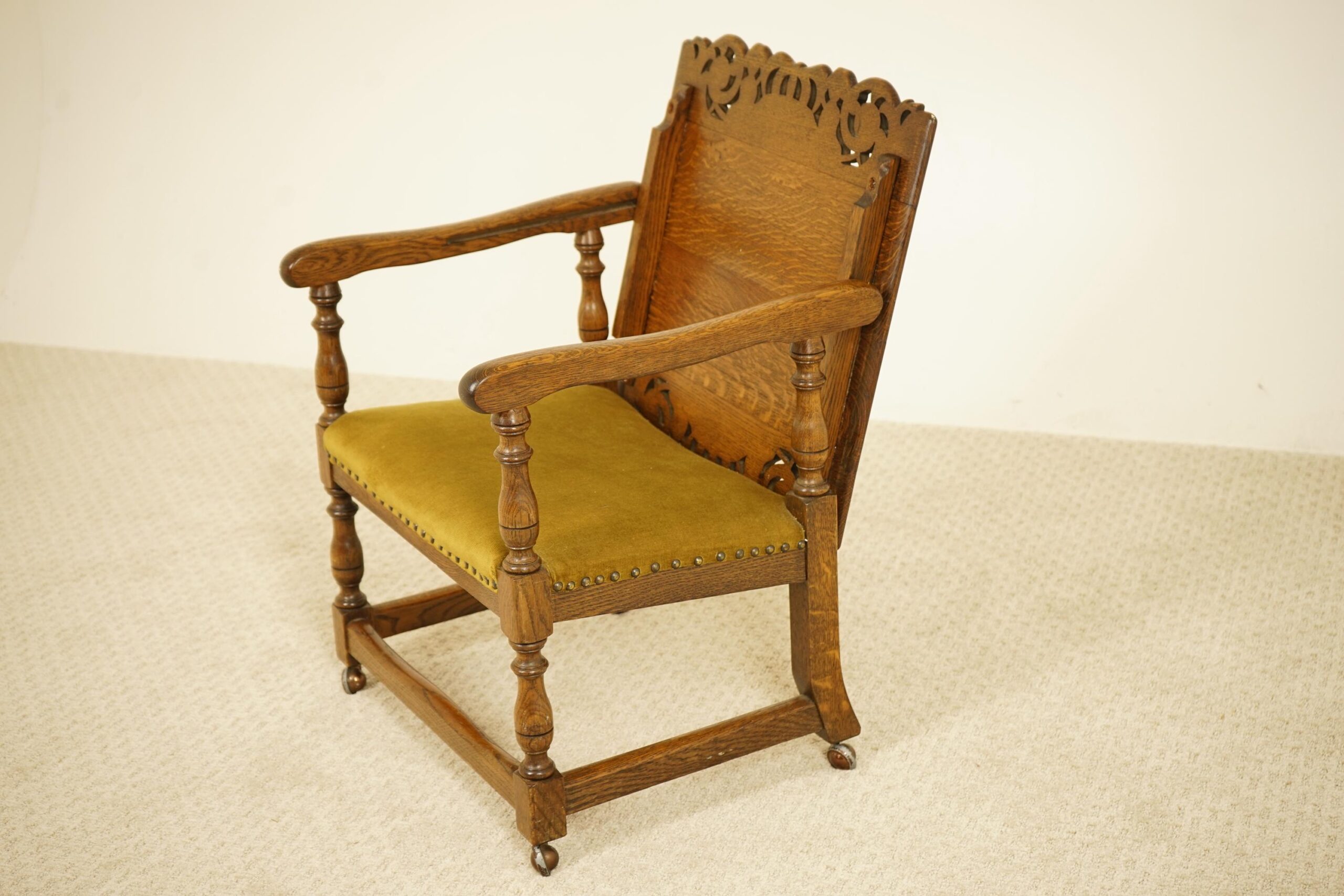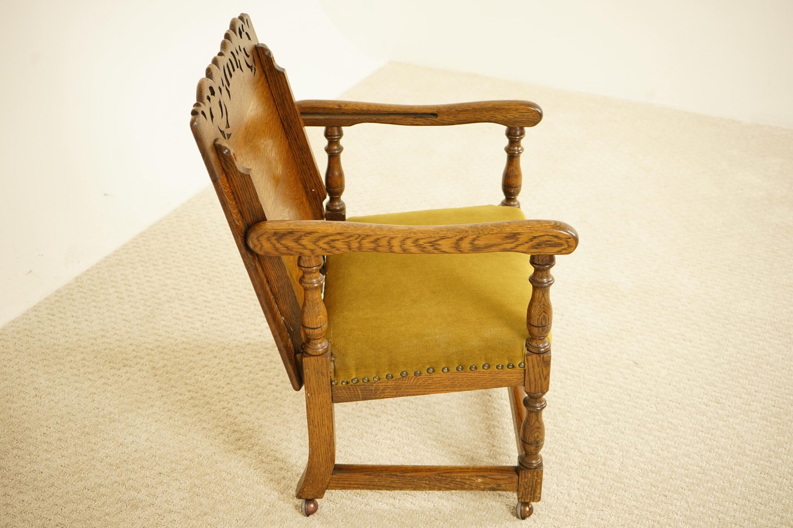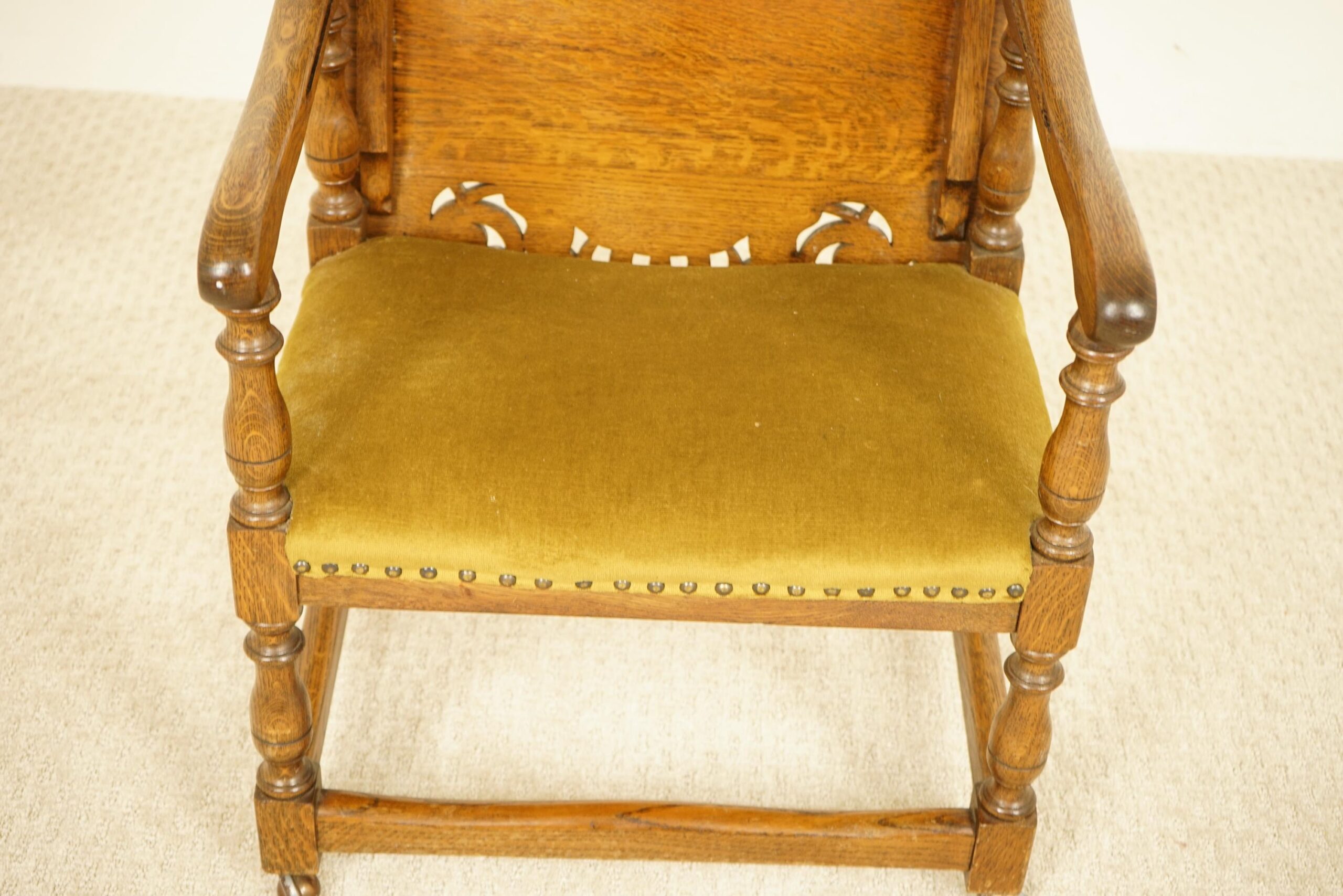 Original upholstered seat with solid arm rest on the sides.