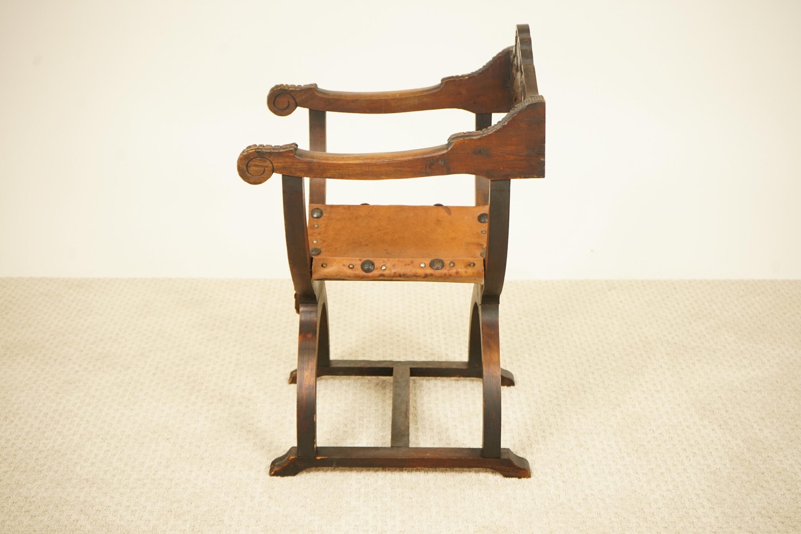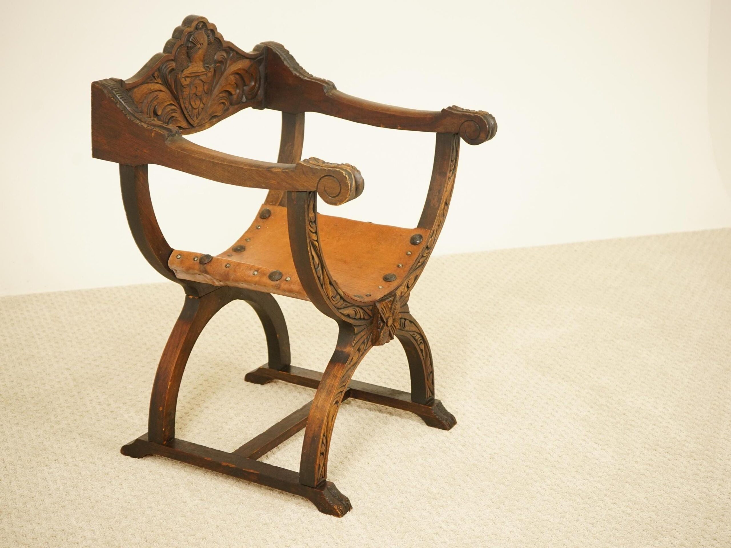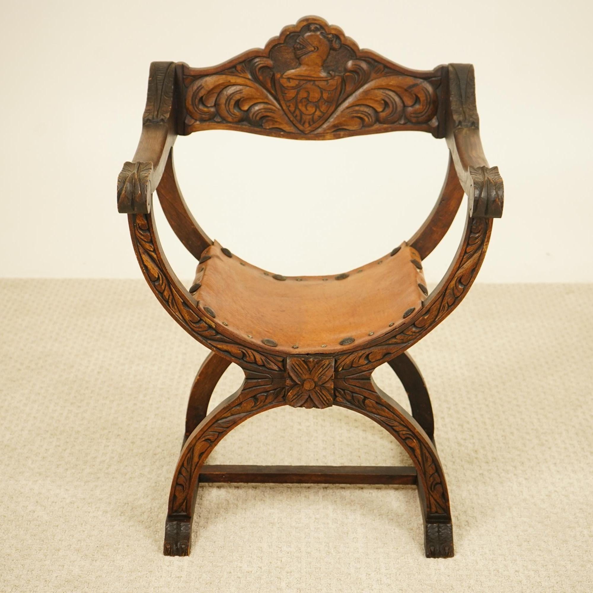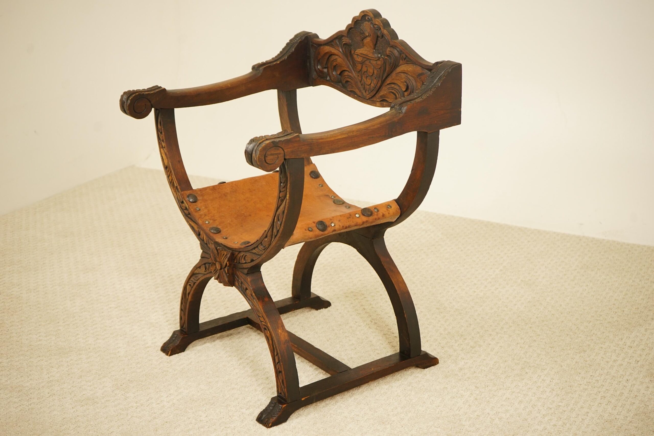Vintage Carved Savonarola Style Throne Chair – Europe 1930 F-1537