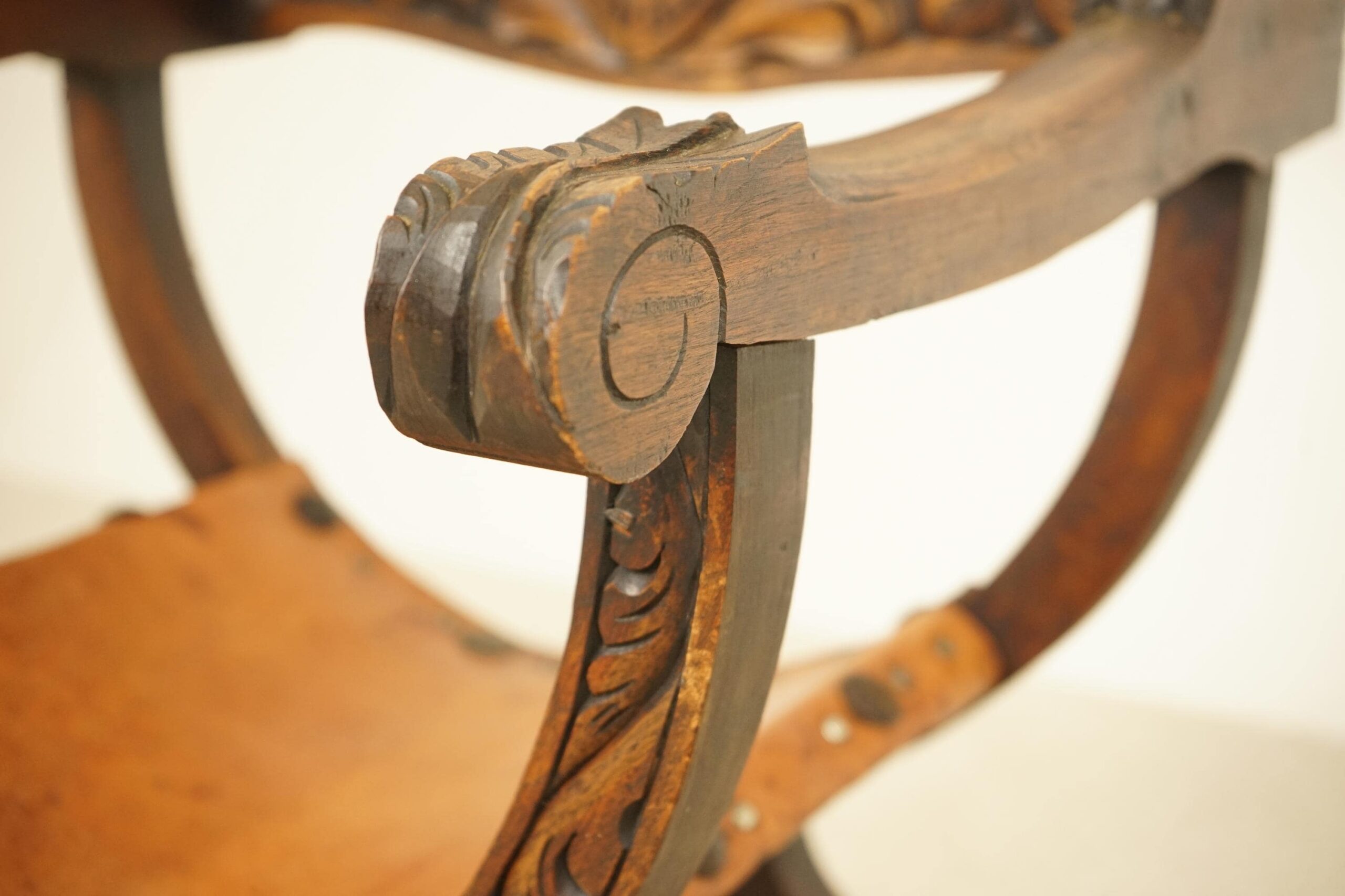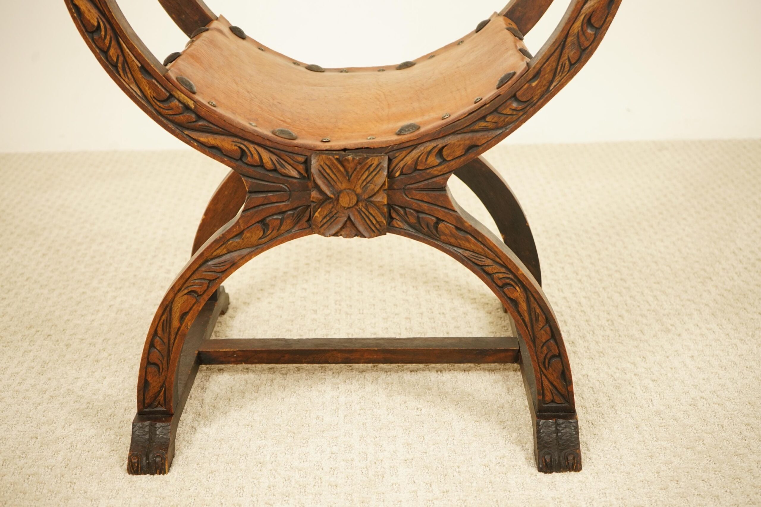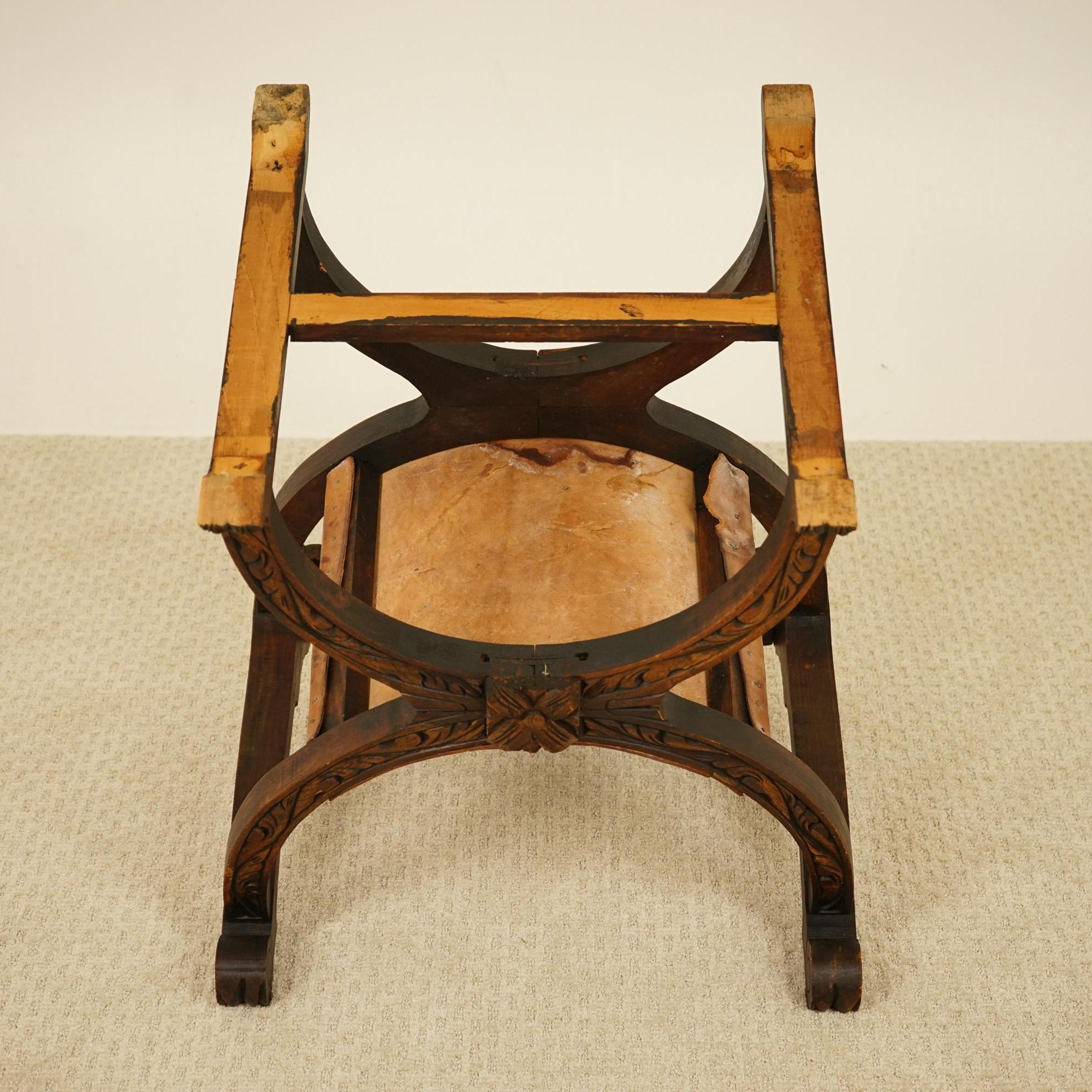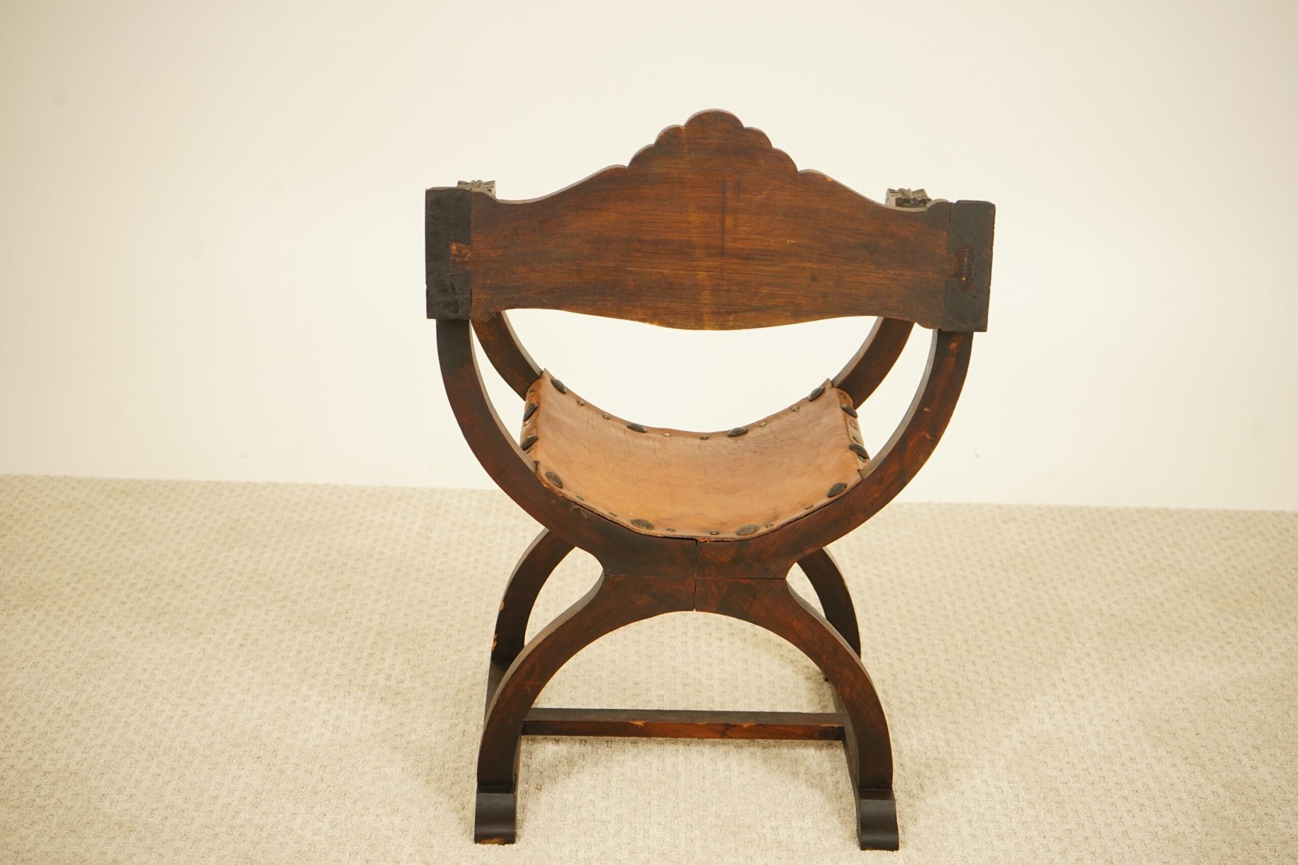 Vintage Carved Savonarola Style Throne Chair – Europe 1930 F-1537