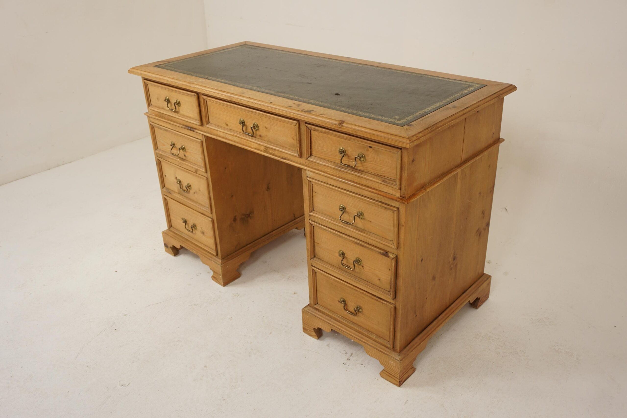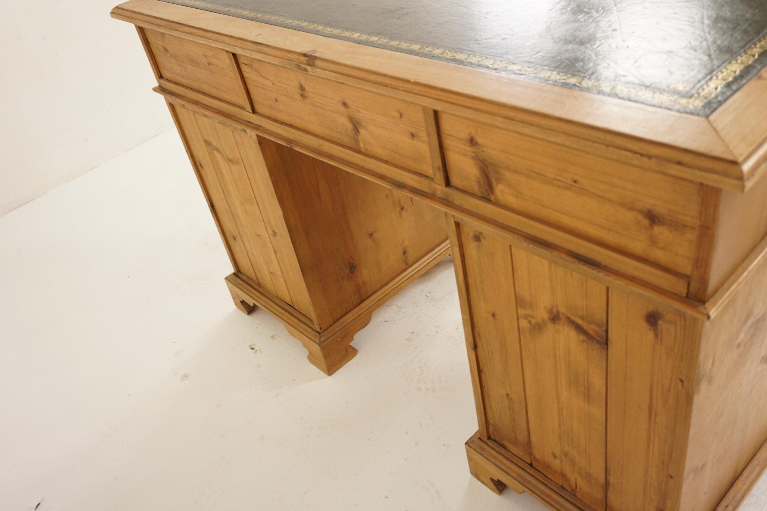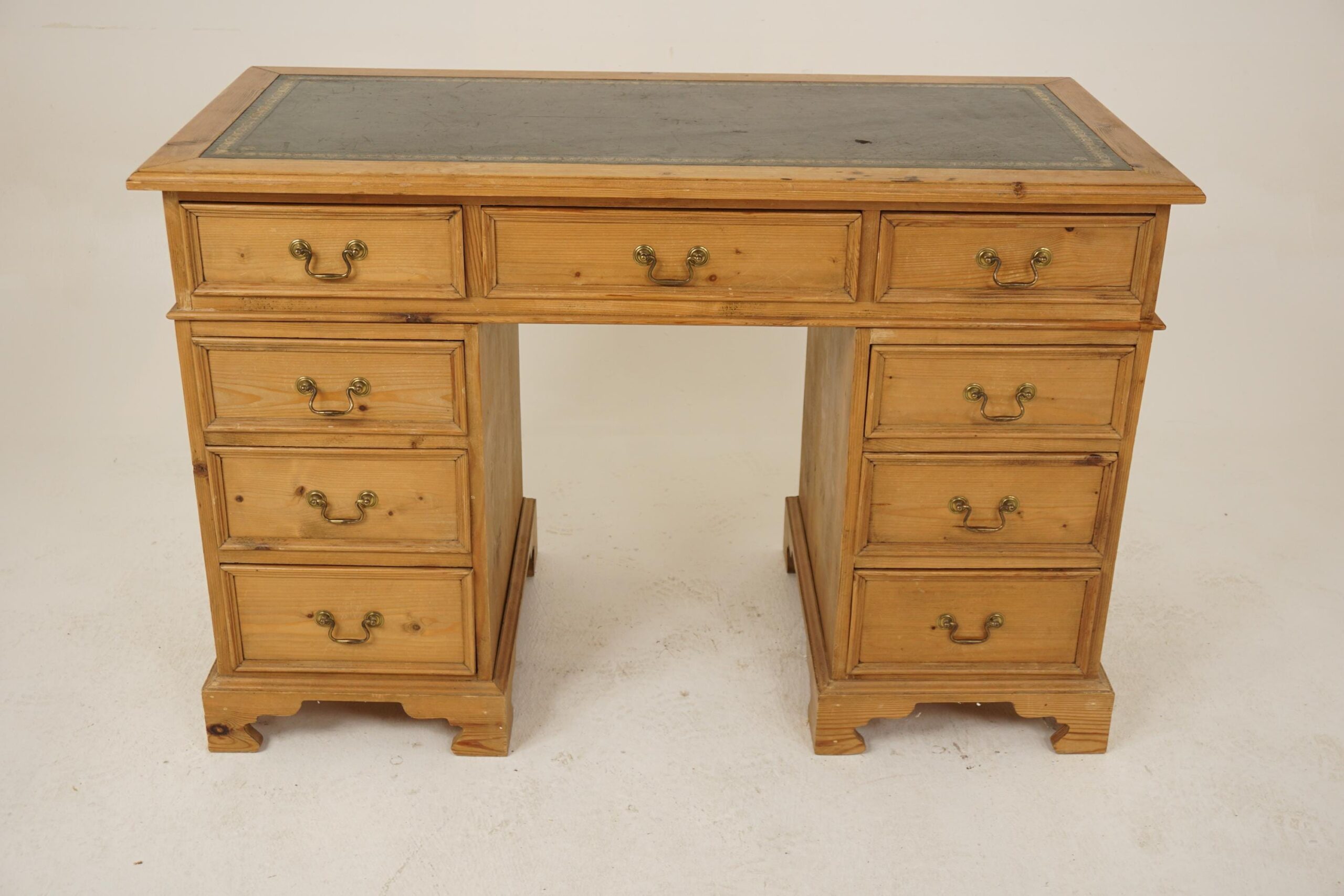 Vintage Georgian Style Pine Double Pedestal Desk with inset leather to Scotland 1940 F-1247