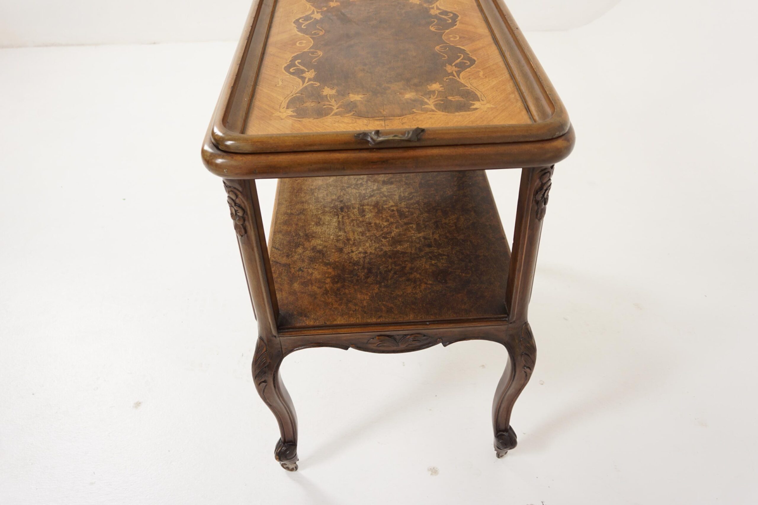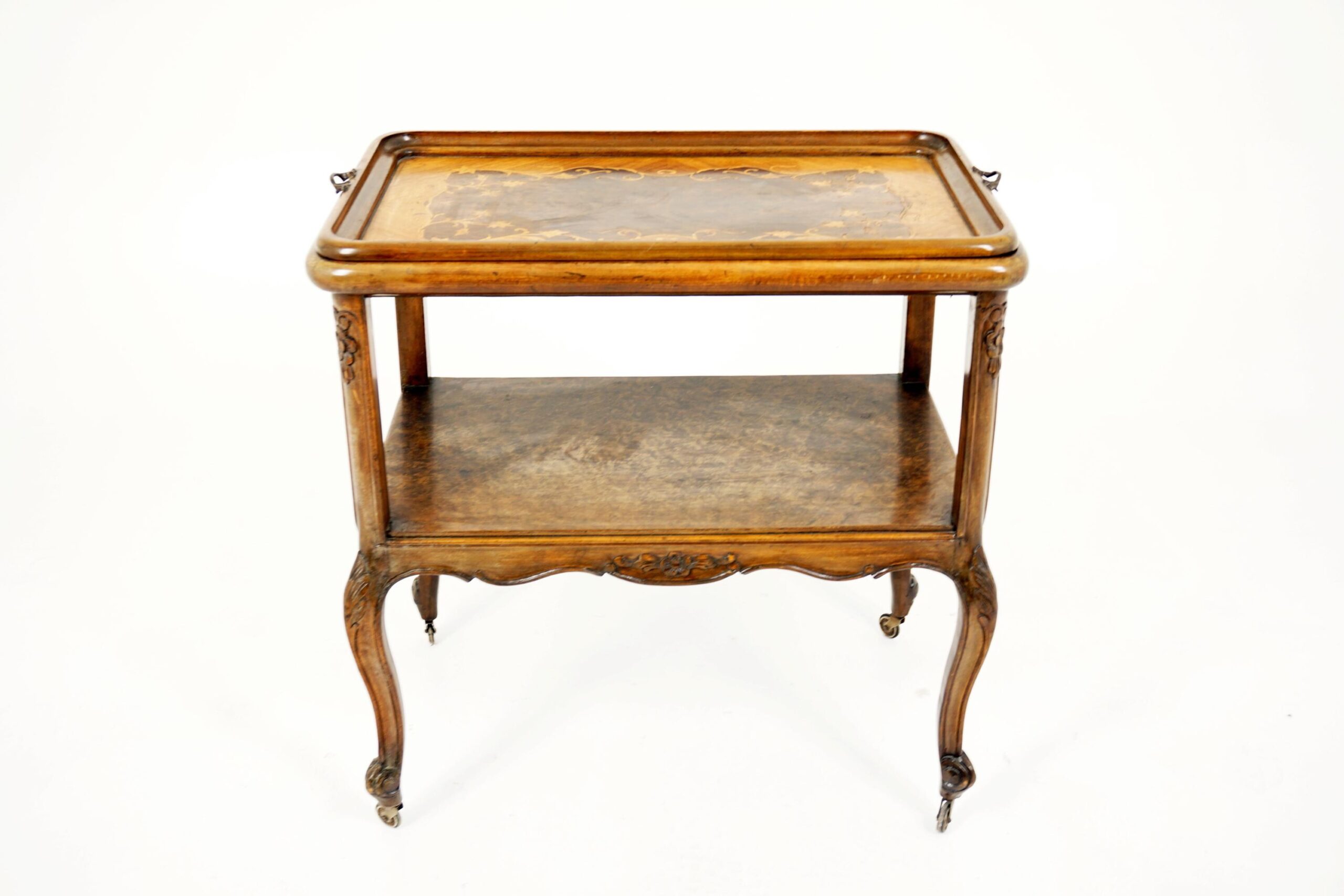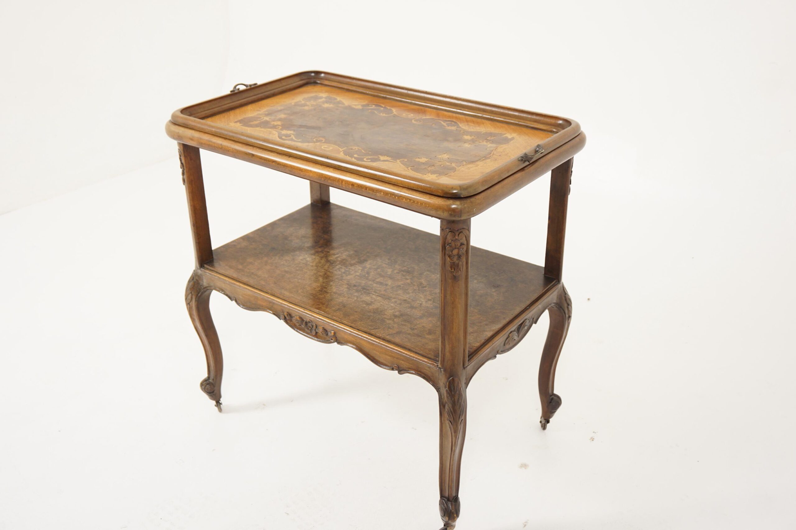 Vintage Inlaid Walnut Tea Trolley, Cart, Bar Cart/Tray, France 1930, F-387