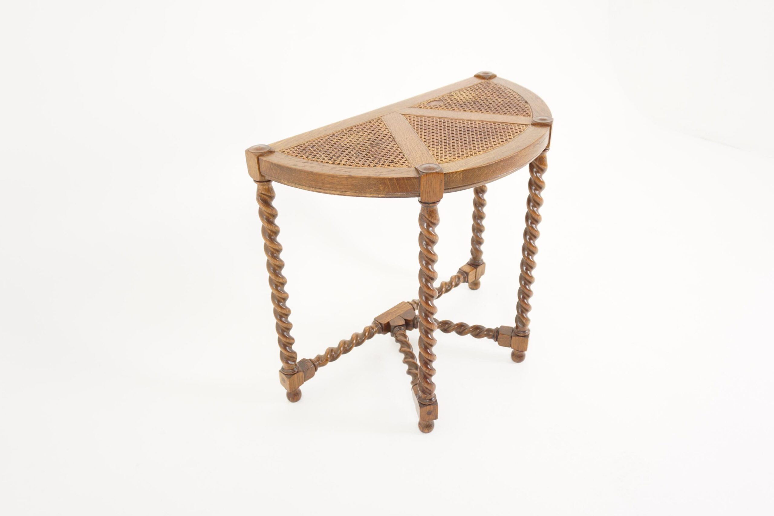 Vintage Oak Barley Twist Bow Front Side Table with canning top _ Scotland 1920 F-1518