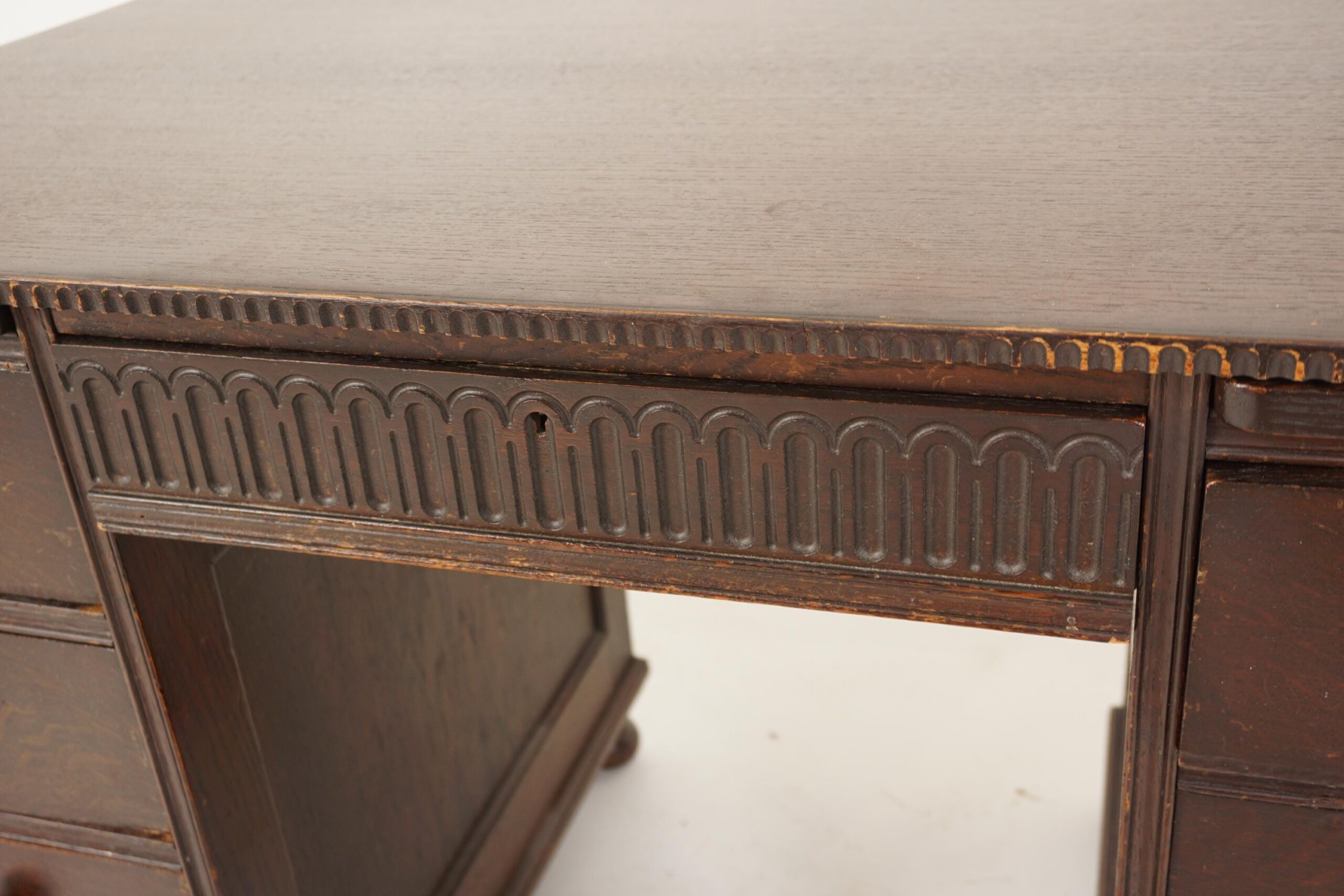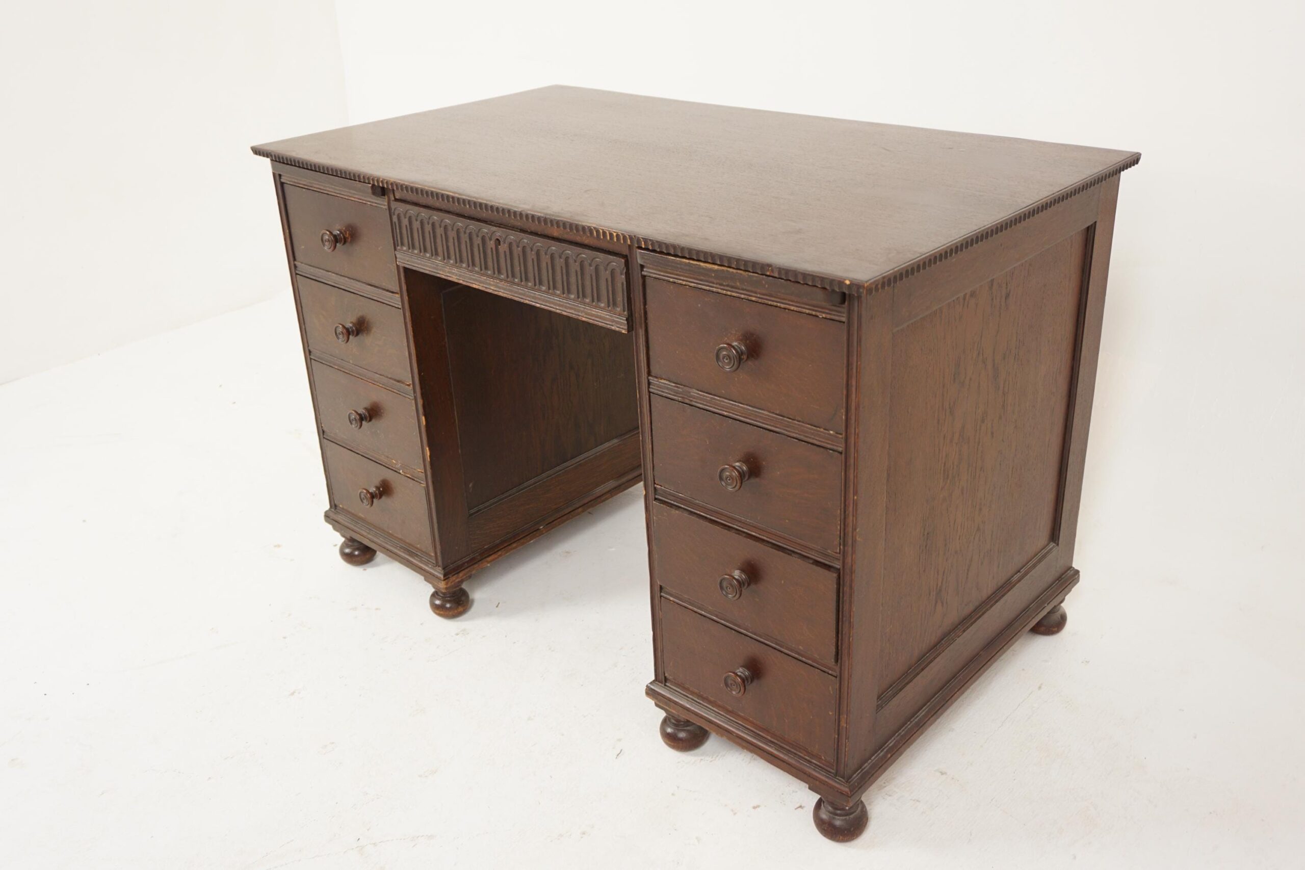 Vintage Oak Double Pedestal Desk, Scotland 1930, F-350