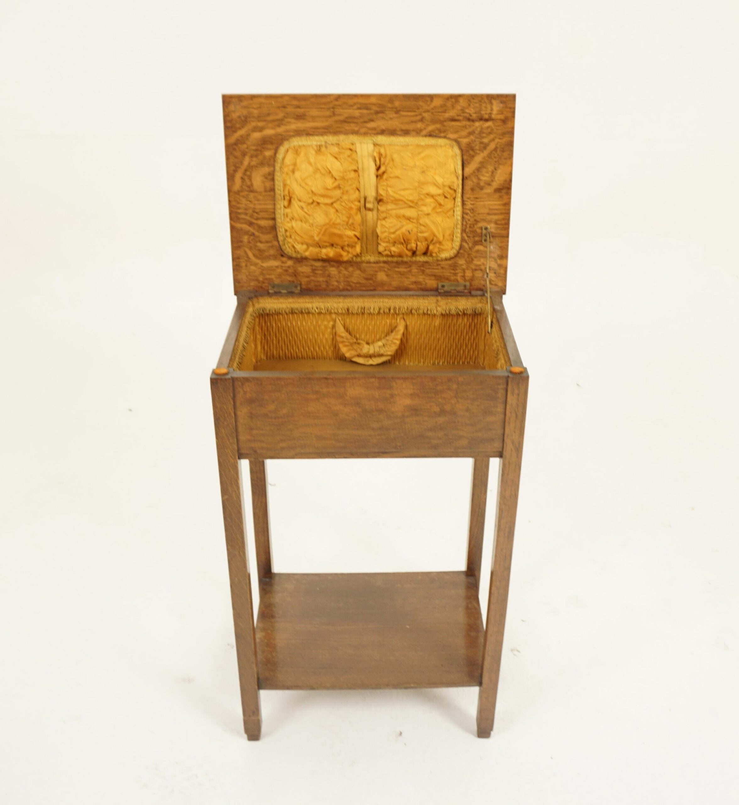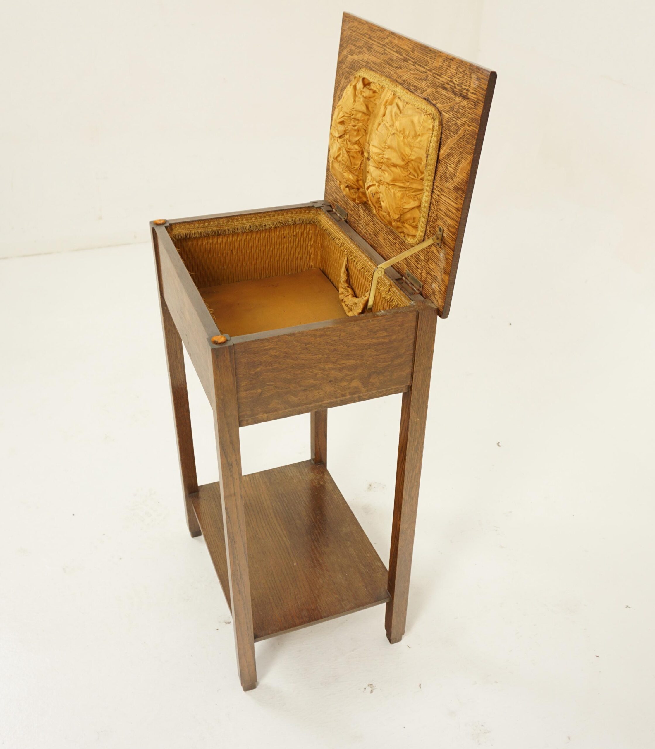 Vintage Oak Lift top Sewing Box, Nightstand Scotland 1920 F-1291