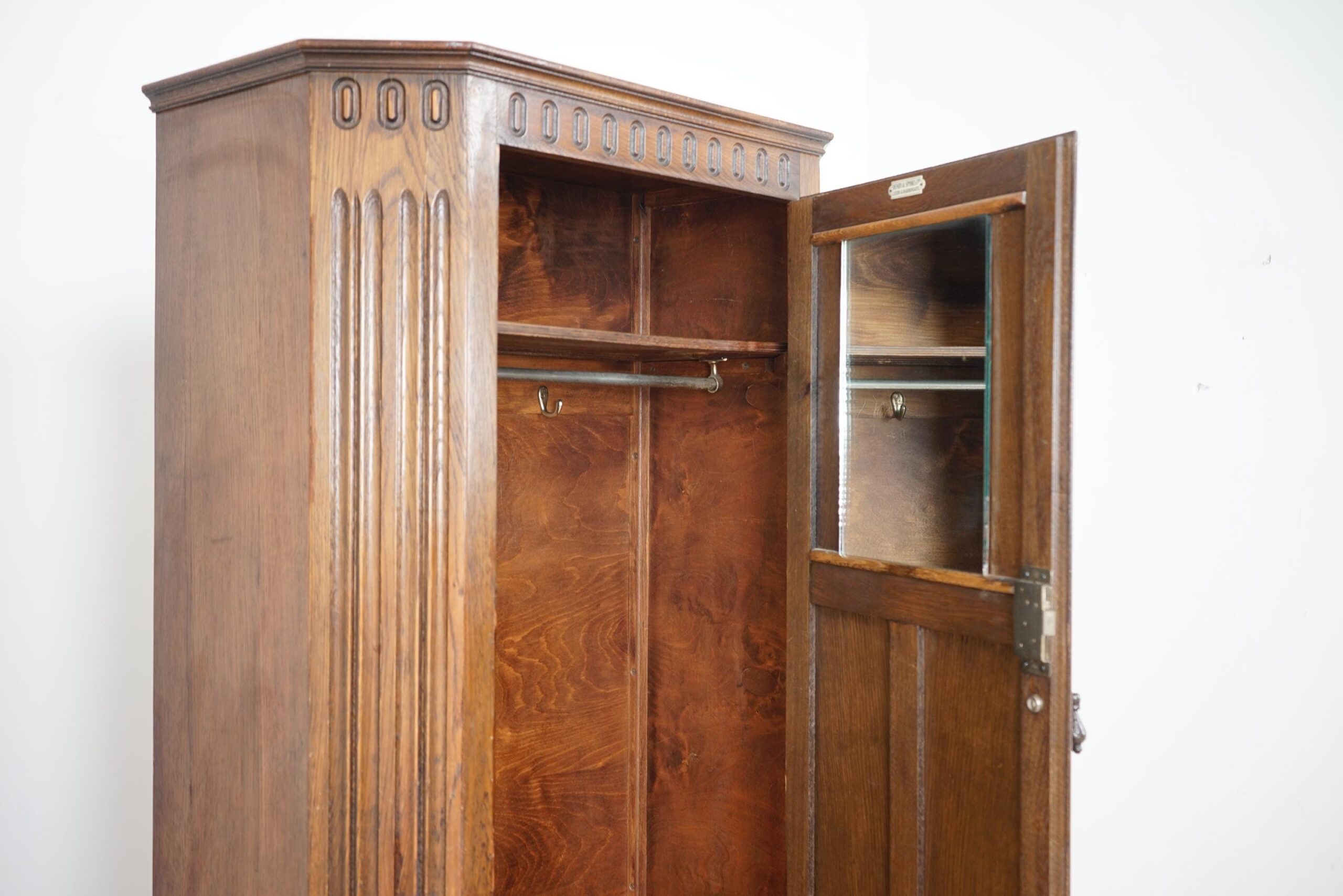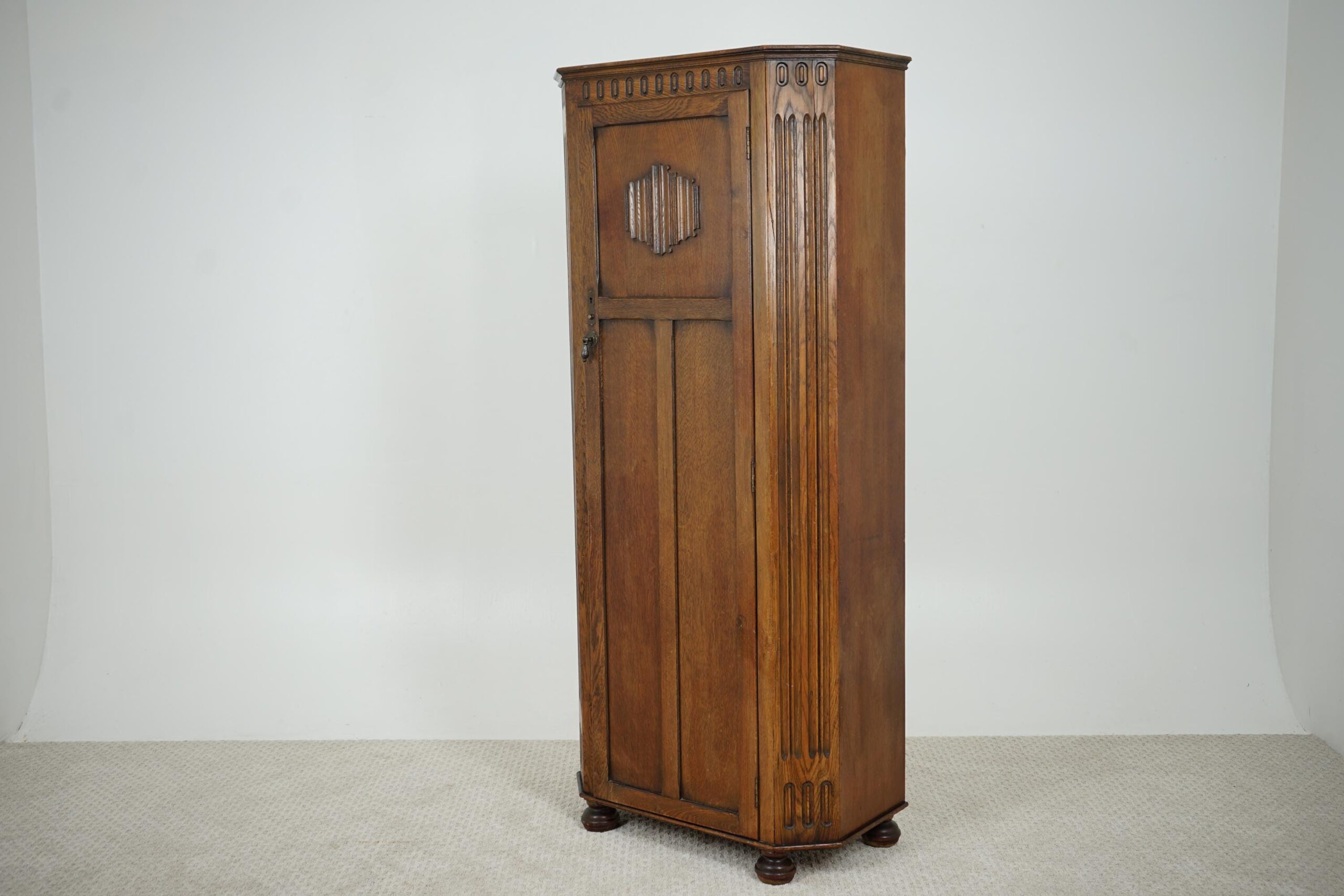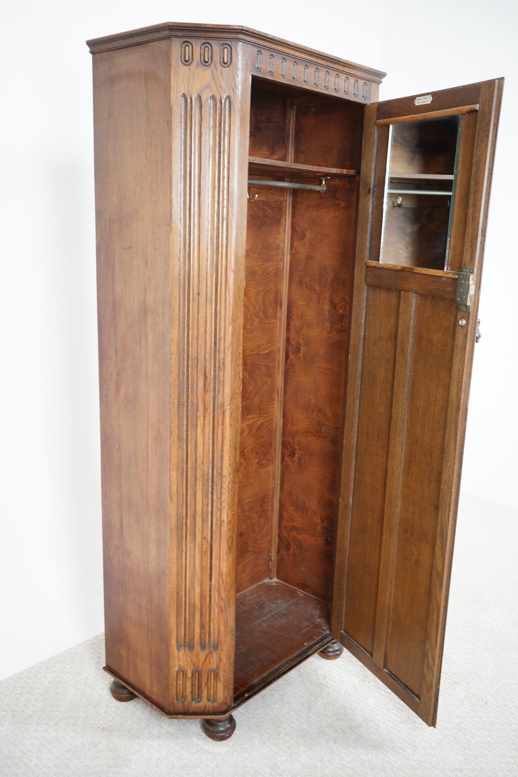 Vintage Oak Single Door Hall Robe "Denby and Spinks, Leeds & Harrogate England 1930 F-1595