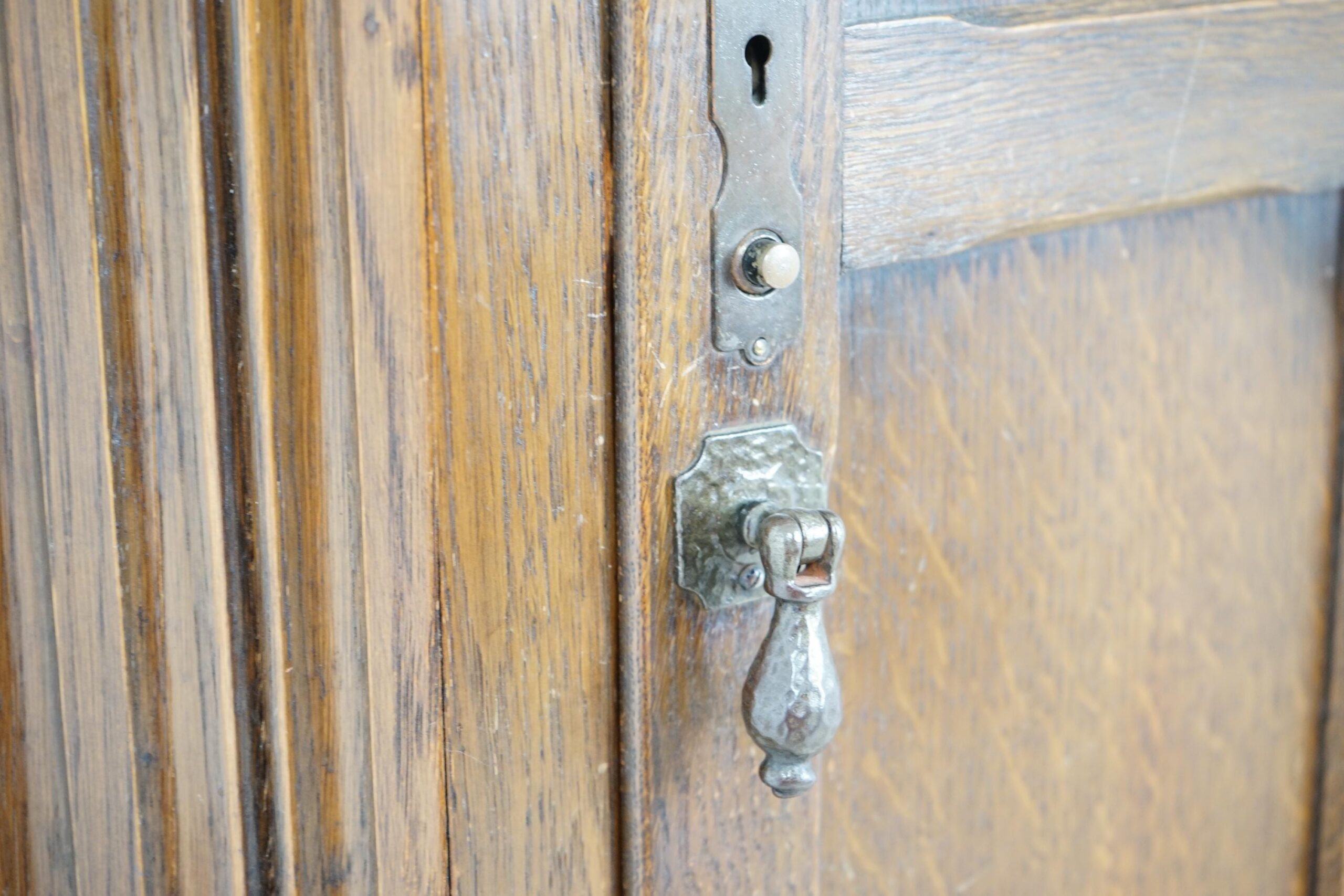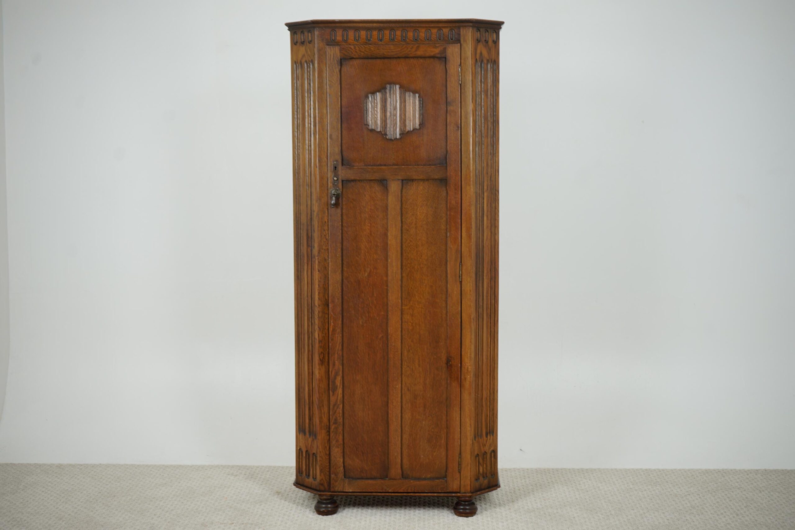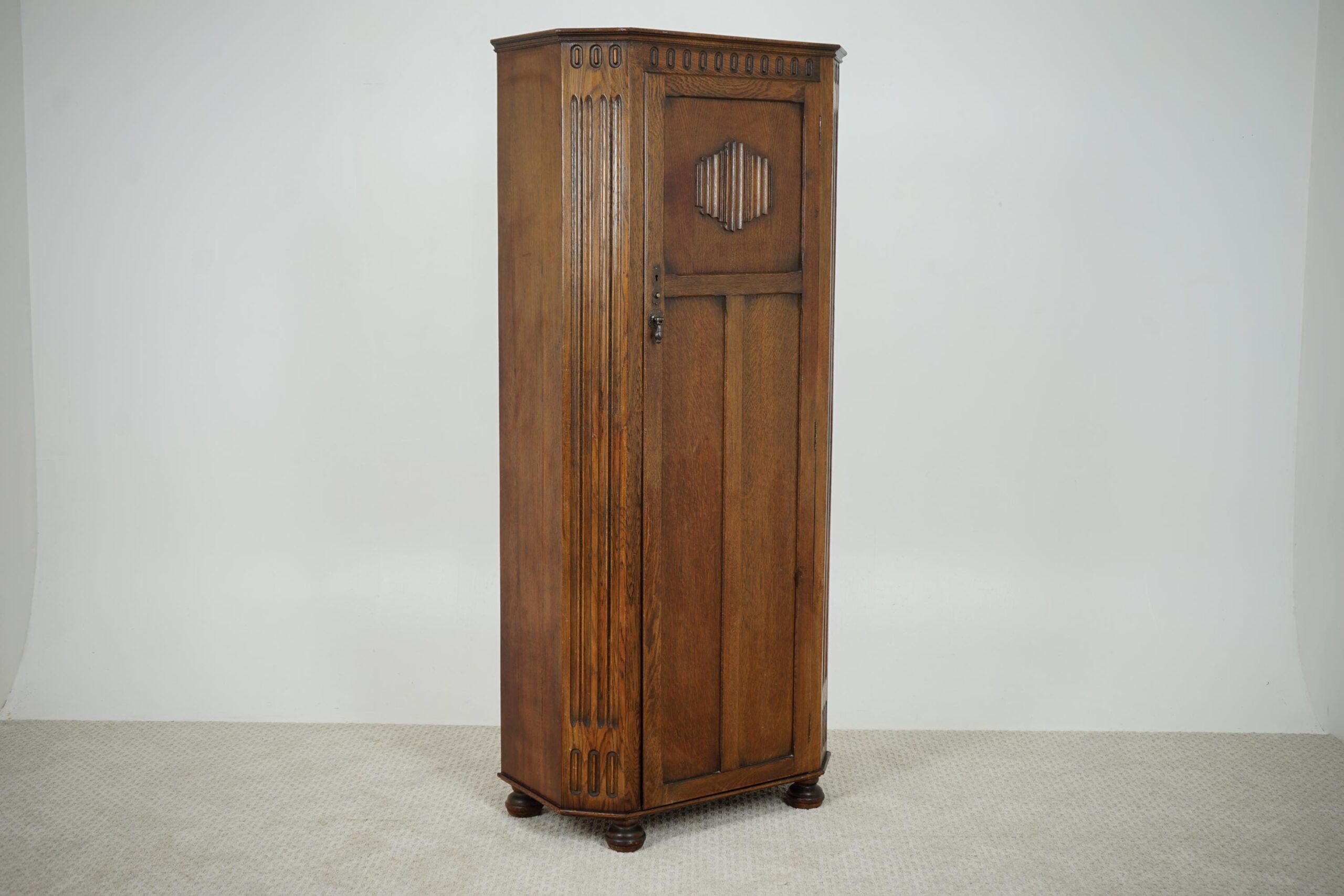 Vintage Oak Single Door Hall Robe "Denby and Spinks, Leeds & Harrogate England 1930 F-1595